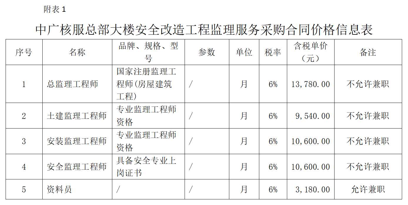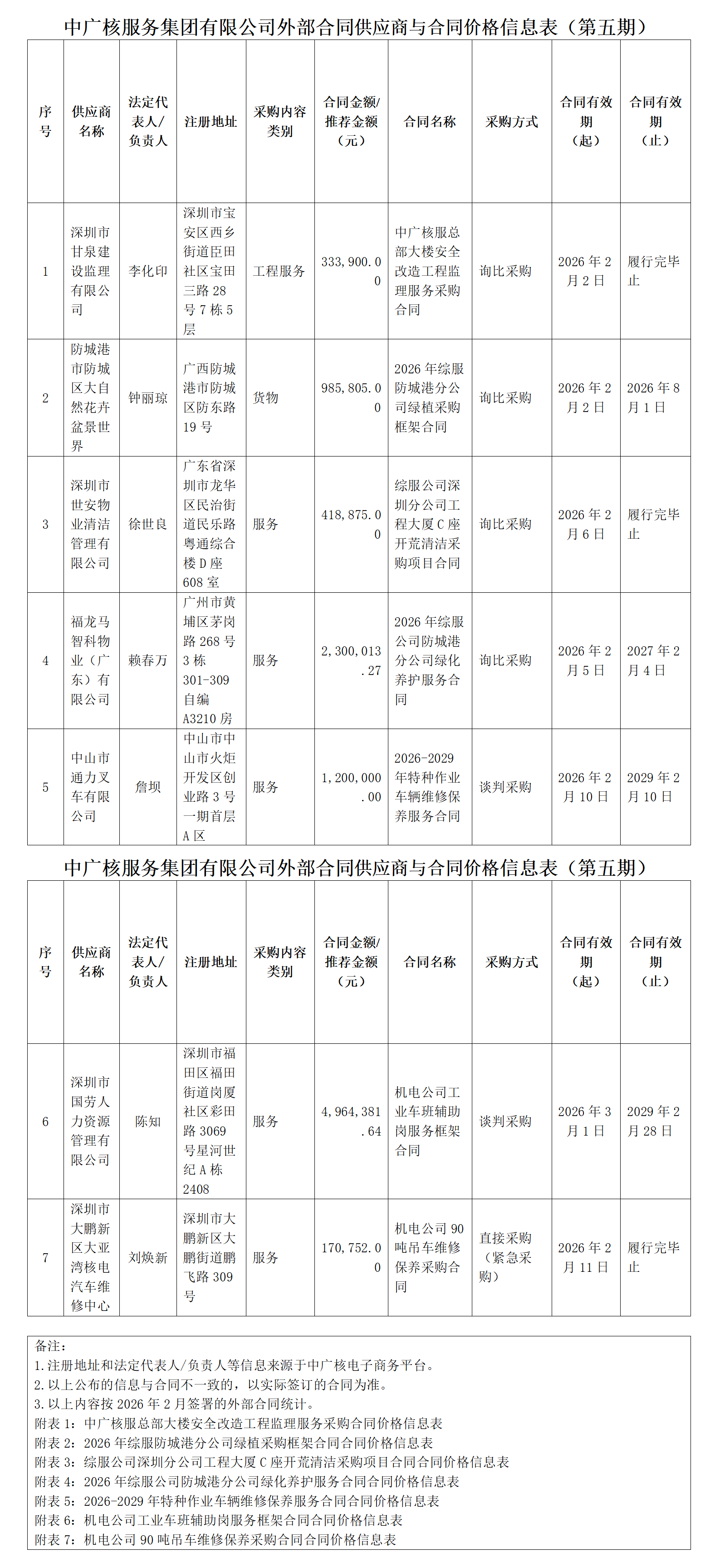 中广核服务集团有限公司外部合同供应商与合同价格信息公开表(第五期)
